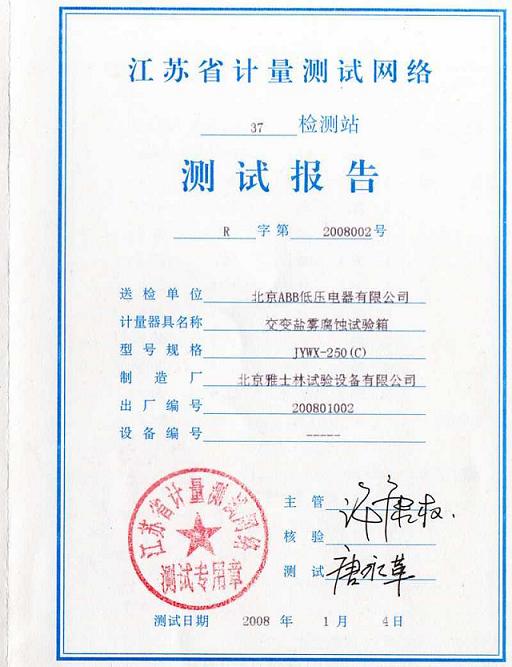 >>鹽霧腐蝕試驗箱測試報告-江蘇計量院-ABB集團(tuán)