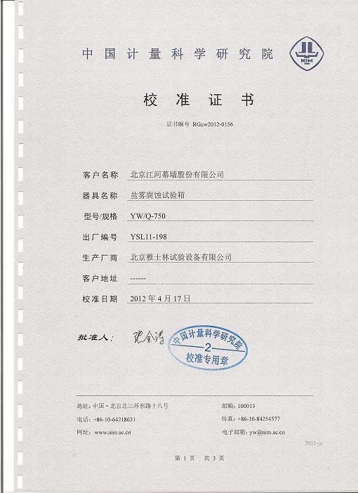 >>鹽霧腐蝕試驗(yàn)箱校準(zhǔn)證書-中國計(jì)量院-江河幕墻