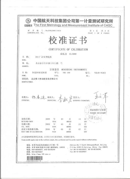 恒溫恒濕試驗(yàn)箱校準(zhǔn)證書(shū)-航天計(jì)量-中國(guó)火箭研究院