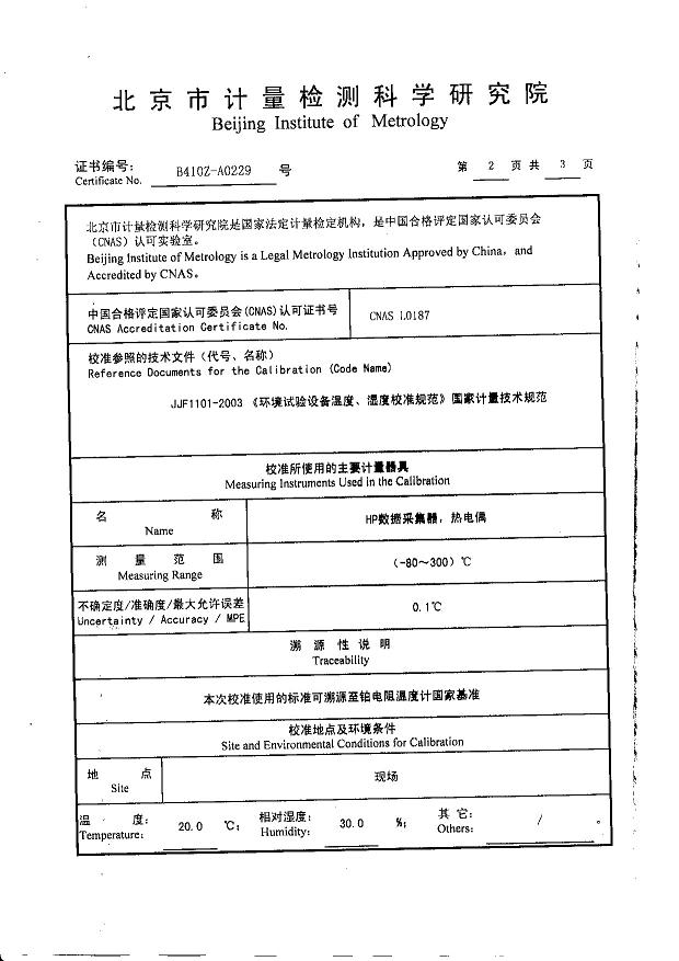 高低溫濕熱試驗箱校準(zhǔn)證書-北京計量院-中國電科院1