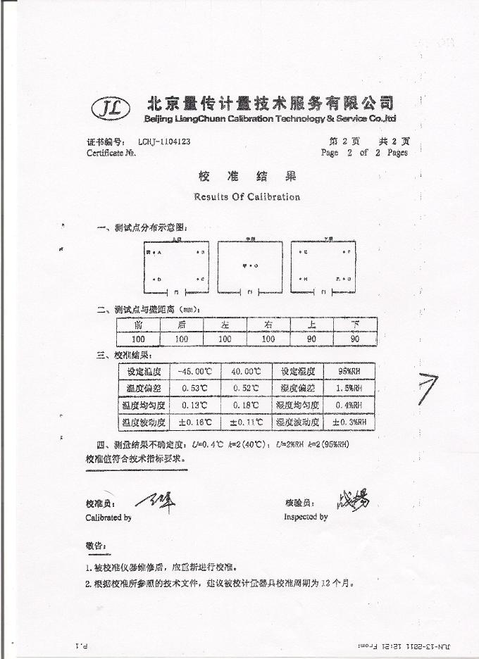 高低溫交變濕熱試驗箱校準(zhǔn)證書-北京量傳計量-中安電子