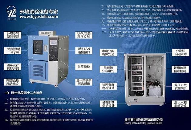 寶劍鋒從磨礪出,梅花香自苦寒來。雅士林儀器持續(xù)創(chuàng)新,開發(fā)最前沿的測(cè)試技術(shù),使雅士林的產(chǎn)品肯有更加大的生命力。雅士林儀器定位于中高端客戶群,高品質(zhì)、高性能高低溫交變濕熱試驗(yàn)箱系列的產(chǎn)品特點(diǎn): 1、擁有外觀設(shè)計(jì)專利,數(shù)控機(jī)床剪折、激光開孔,結(jié)構(gòu)設(shè)計(jì)合理,新穎美觀。 2、擁有自主知識(shí)產(chǎn)權(quán)和計(jì)算機(jī)軟件著作權(quán),掌握超低溫制冷、溫度自動(dòng)補(bǔ)償加熱、淺槽加濕等環(huán)境試驗(yàn)核心科技。 3、控制系統(tǒng)采用日本進(jìn)口優(yōu)易控UMC系列7英寸高清真彩液晶觸摸顯示屏,溫度控制采用P•I•D+S•S•R系統(tǒng)同頻道協(xié)調(diào)控制,自動(dòng)演算的功能,支持電腦實(shí)時(shí)監(jiān)控、歷史曲線回放、程序編輯、遠(yuǎn)程診斷等功能。 4、制冷系統(tǒng)采用原裝法國泰康壓縮機(jī)組,制冷劑采用美國杜邦品牌,制冷效果強(qiáng)勁,性能穩(wěn)定。 5、電氣系統(tǒng)核心電氣元器件均采用施耐德、歐姆龍等進(jìn)口知名品牌。 6、加濕系統(tǒng)采用國際流行的淺槽式加濕方式,加濕效果及濕度控制更精準(zhǔn)。 7、照明系統(tǒng)采用飛利浦套件,觀測(cè)窗采用漏斗形設(shè)計(jì),觀測(cè)視野更開闊。 8、抽屜式加水方式,超大水箱設(shè)計(jì),持續(xù)試驗(yàn)時(shí)間更長。 9、沿襲國外環(huán)境試驗(yàn)設(shè)備先進(jìn)設(shè)計(jì)理念,水路、電路完全分離,使用更安全。 10、獨(dú)有的漏電保護(hù)設(shè)計(jì),超溫、超壓、過載、過電流保護(hù),操作更安全。 11、標(biāo)準(zhǔn)化圖紙接線、焊接,三十五項(xiàng)嚴(yán)格檢驗(yàn)流程,確保設(shè)備質(zhì)量,無安全隱患。 12、專注于細(xì)節(jié),引線測(cè)試孔防銹設(shè)計(jì)、進(jìn)口硅橡膠密封條雙層密封、高品質(zhì)可固定式PU腳輪設(shè)計(jì)、工作室底部引流槽設(shè)計(jì)等。 全國免費(fèi)服務(wù)電話:4006 400 998 |