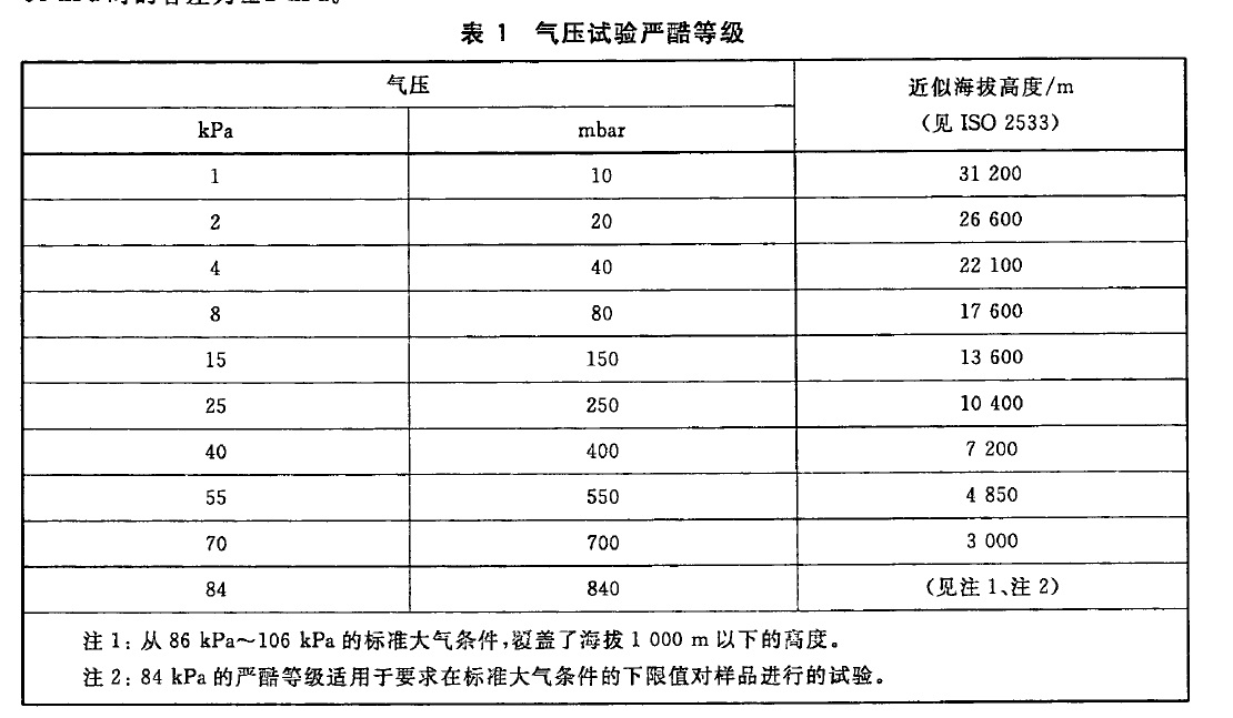 上圖是GB/T2423.21-2008中規(guī)定的氣壓試驗(yàn)等級(jí)。地球大氣受重力作用,離地面越高,空氣越稀薄,氣壓也就越低。在標(biāo)準(zhǔn)大氣條件下,海平面氣壓約為 101.3kPa 。隨著海拔上升,氣壓呈非線性下降趨勢(shì)。這是因?yàn)榇髿獠⒎蔷鶆蚍植,越往高空,空氣分子?shù)量越少,分子撞擊物體表面產(chǎn)生的壓力也就越小。